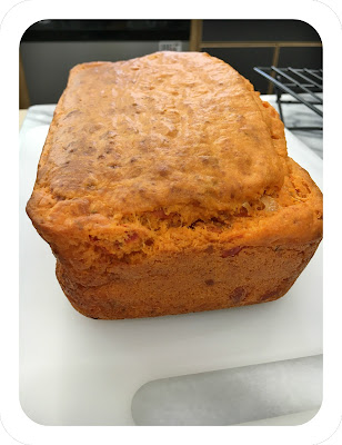 Like it or not, this bread is basically pizza. But no where near as good as real pizza. I feel like just making a pizza dough with the cheese and tomato in it would have been a much better replacement for this. In fact, that sounds a lot better than how this bread turned out. There were both mozzarella and Parmesan cheese in this, but you could barely tell at all. You didn't get any of the gooey cheesiness that comes with pizza. I love the color of this bread, and it's not bad, but there's really no mistaking it for what it is: wannabe pizza.